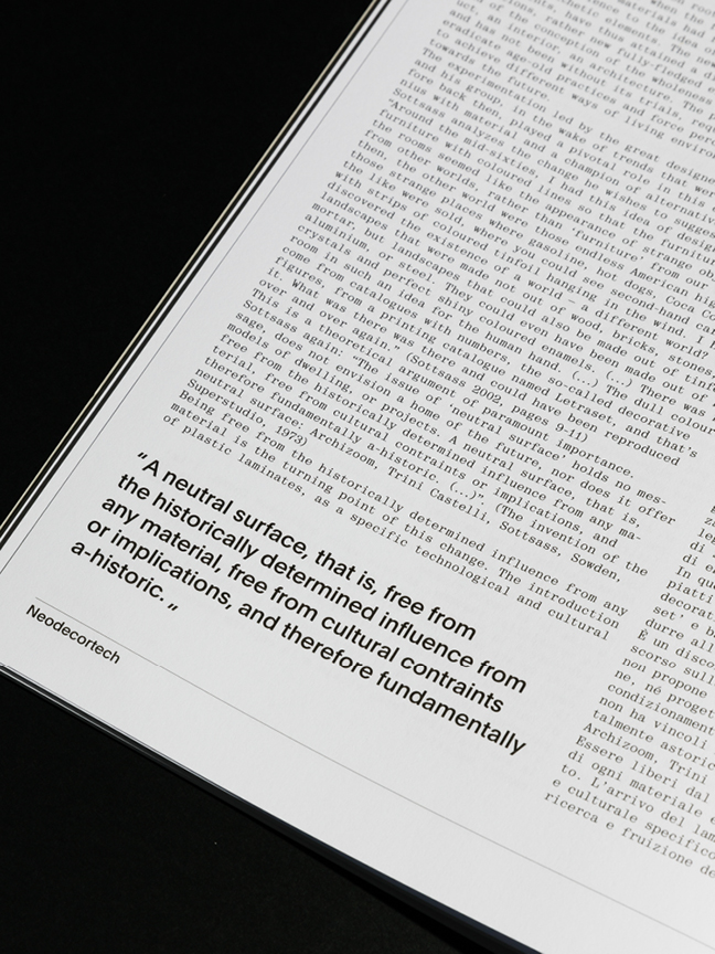 Neodecortech is an Italian based decorative laminate industry, constantly involved in monitoring and interpreting new styles and trends. Laying claim to great quality products and technical competences, the guiding objective was to elevate its identity towards new prospectives, giving Neodecortech a new voice in the market, with a brand new company’s core attitude. Fresh and refined, the new image emerges by the cohesion of different aspects of the communication, with a defined, bold attitude reflected in the art direction of editorial projects, web, photo shootings, graphic design, set styling, exhibition stands styling and architectural projects. www.neodecortech.it